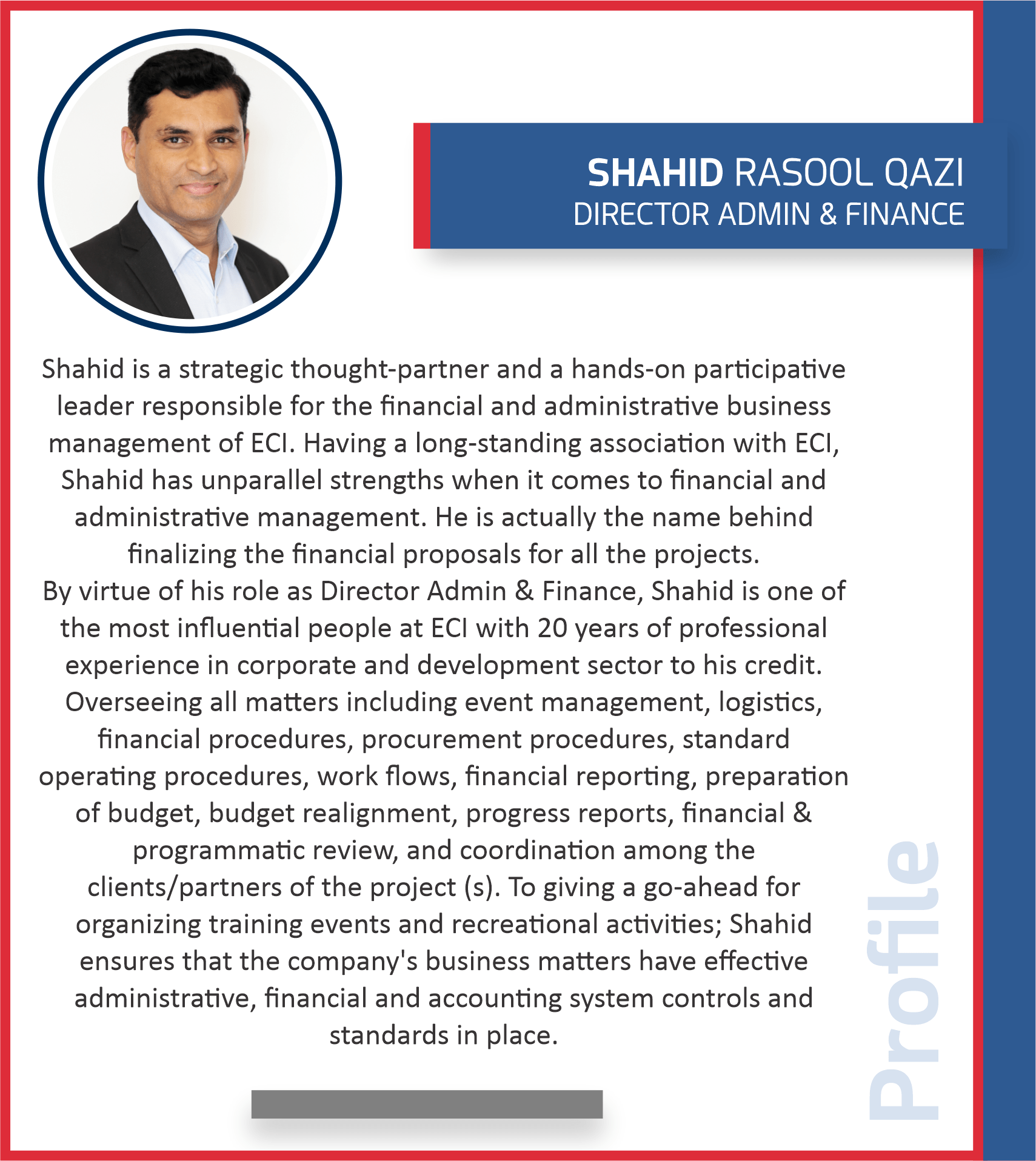 ECI’s Panel of Mentors comprises of influential dignitaries from various disciplines. Our mentors provide strategic input on ideological and philosophical levels for the organization and serve as our ambassadors. Our roster of mentors includes well-rounded and highly respected luminaries from various fields which span across Public Health, Monitoring, Evaluation and Research, Strategic Management, Financial Management and Risk Management.